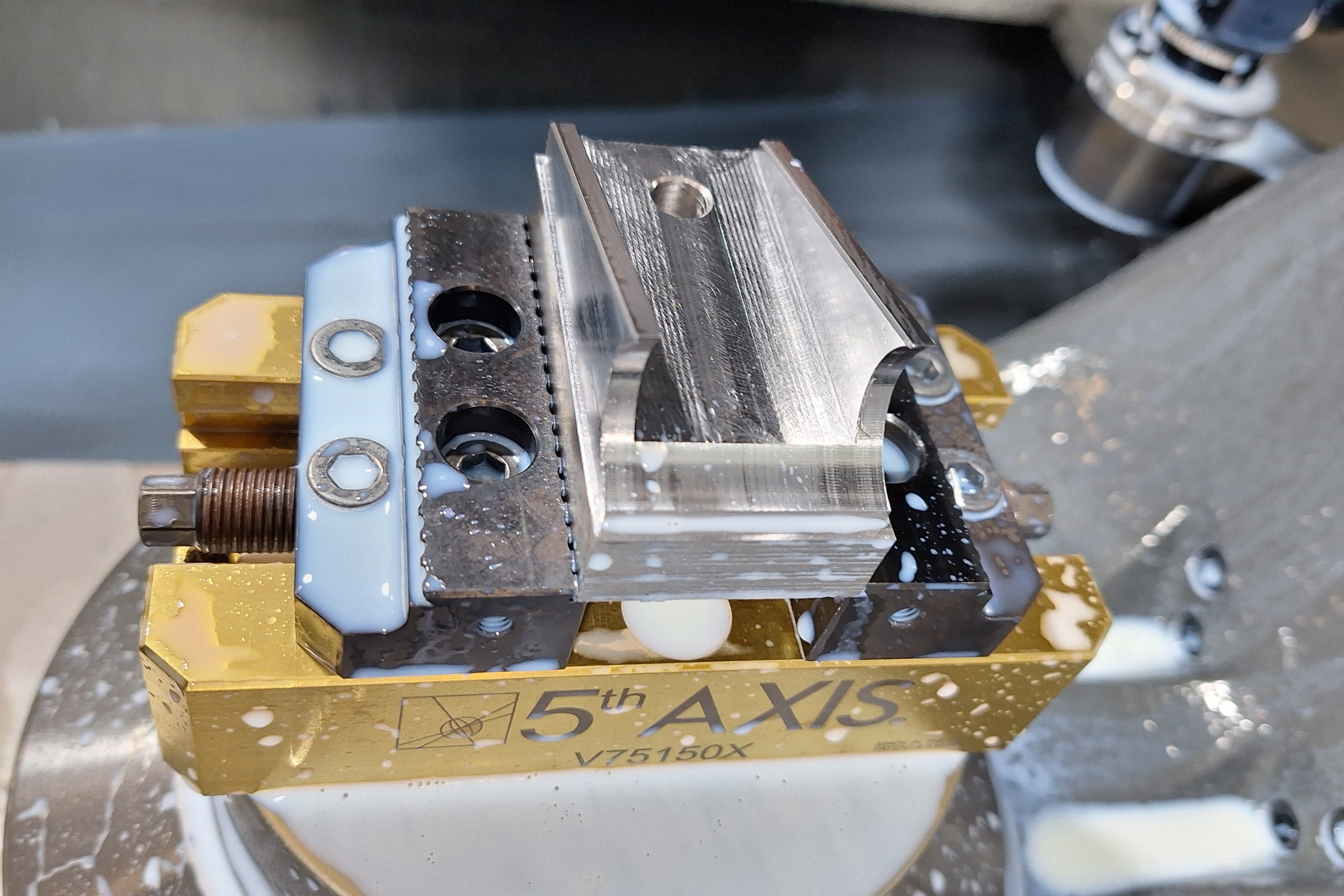 I manufactured a large 6-piece mould for high temperature pressing of PLA composites sheets. The mould was so large that it barely fit into the machines available (which are pretty small). I was able to make the side panels on the 5-axis, which allowed me to drill holes and machine from 3 different directions at once.