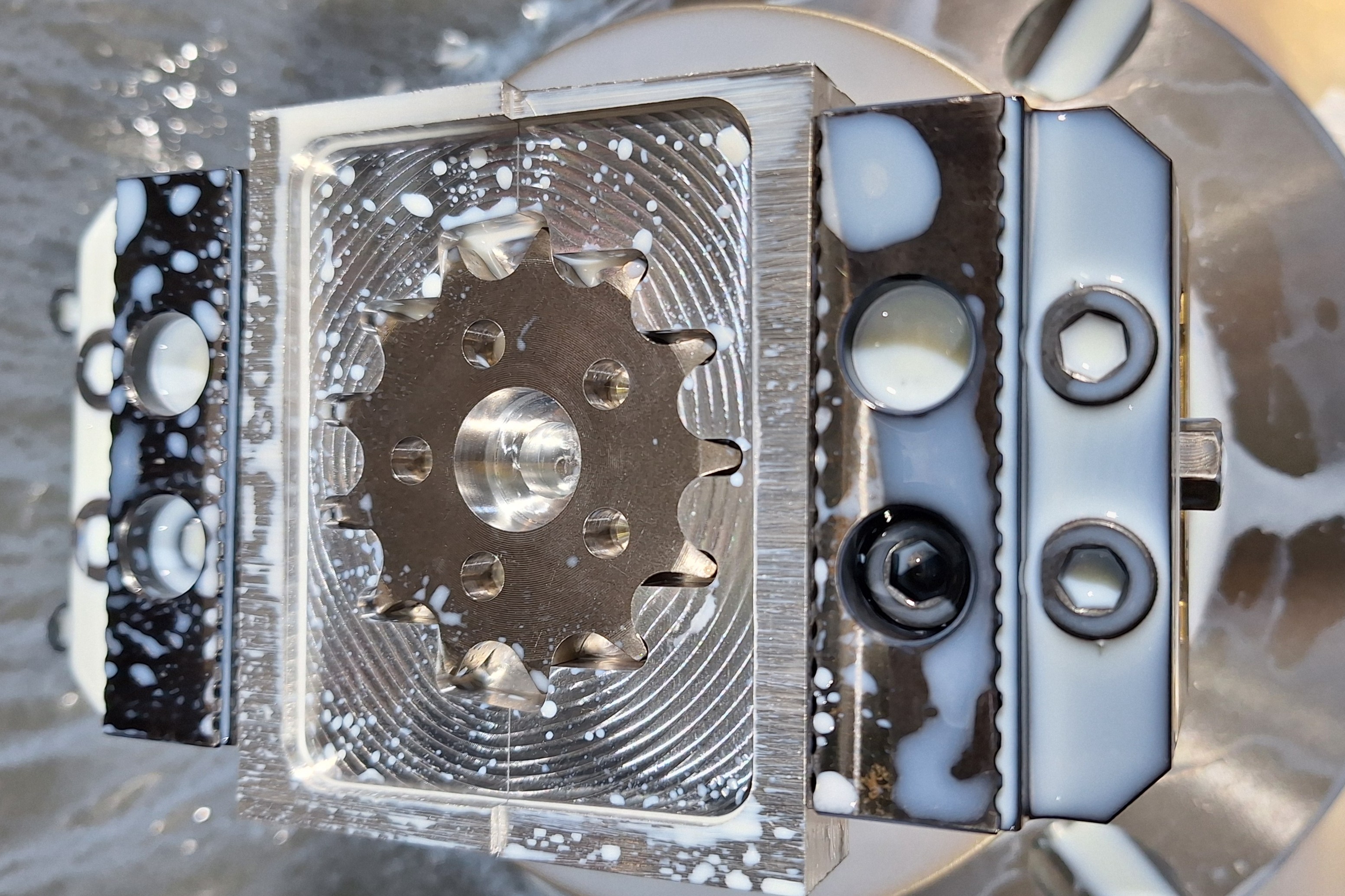 The mould worked well, but we only had a desktop injection machine which didn't generate much pressure and struggled to clamp the mould together. This often caused plastic shots to only fill half the mould or spill plastic out the sides of the mould.